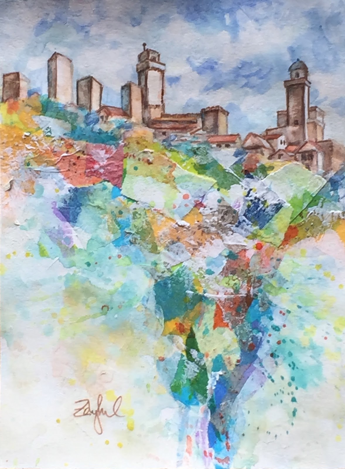 A new lesson for my upcoming EAT PAINT COOK Tour. Can't wait to teach this and other art lessons in Tuscany! "Tuscany's Emerald City- San Gimignano" ©Rebecca Zdybel |